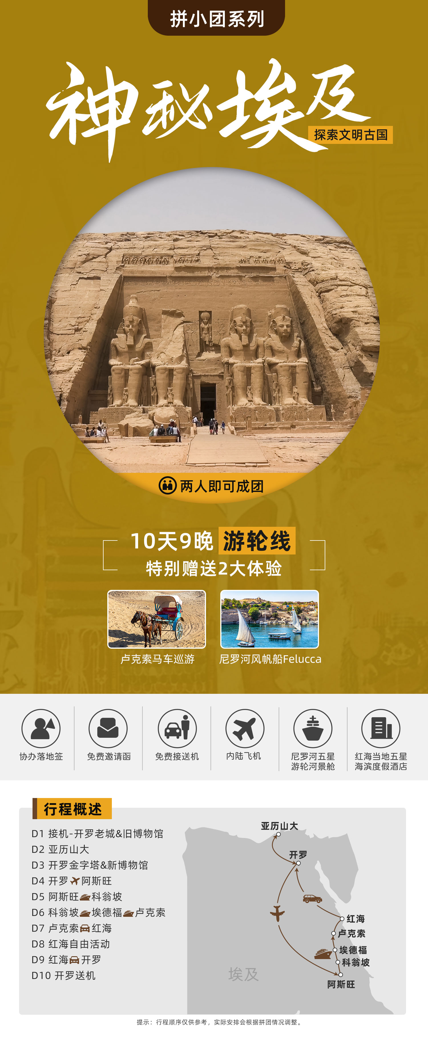 路线名称:<拼小团>【游轮线】埃及开罗+红海+卢克索+阿斯旺+亚历山大10日游(落地签) ; [ 中东非旅游, 中东非 ]