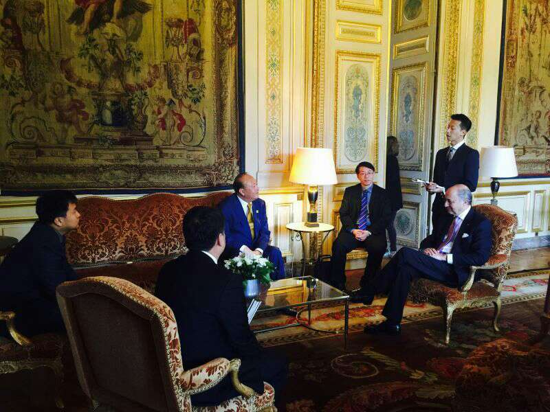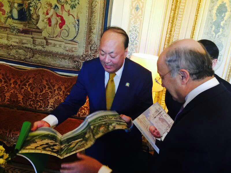 2015年5月5日,赴法国尼斯参加天狮集团20周年庆嘉年华法国尼斯站系列活动的天狮集团董事长李金元先生,集团总裁白萍女士抵达法国巴黎,受到法国旅游局官员的亲切接见。