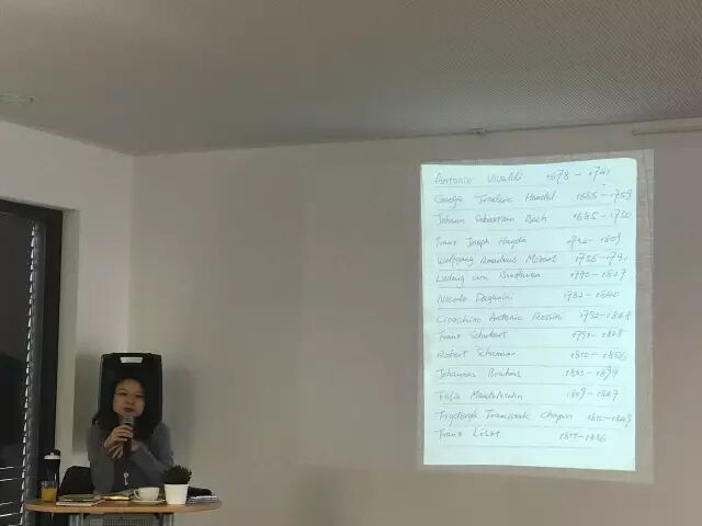 胡老师首先以幽默风趣的语言介绍了几位世界著名的音乐大师,从他们的生平事迹、生活轨迹让大家对音乐作品的创作背景有了更深入的了解。