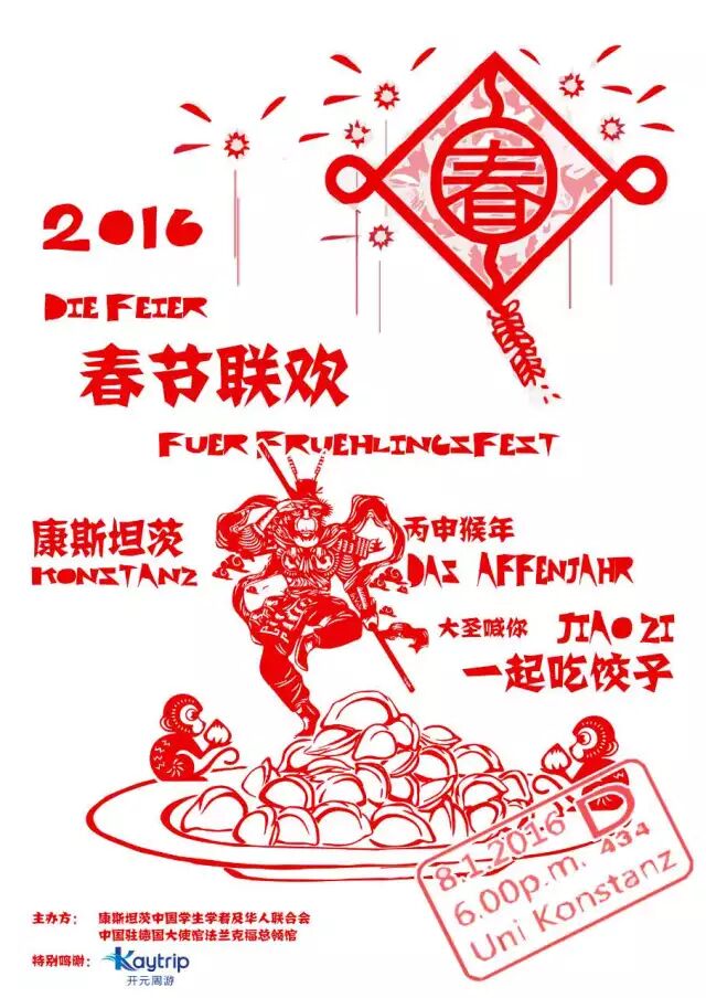 虽无瑞雪兆丰年,康城春晚暖心间。就在圣诞假期悄然结束的时候,康斯坦茨学生学者及华人联合会(以下称康斯坦茨学联)于2016年1月8日为康城学子及当地华人精心准备了迎新春联欢晚会,为身处康城的华人学生带来了寒冬中温暖。此次联欢会得到了中国驻法兰克福总领馆教育组陈正副领事的亲切关心以及开元周游集团的大力支持。