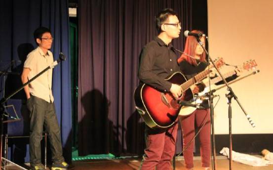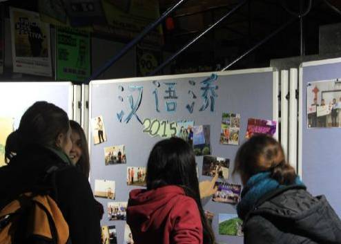 中场休息期间观众们的积极性却也丝毫不减。吉他手在台上高歌,观众们纷纷流连驻足于孔子学院的书法展台以及图片展位。