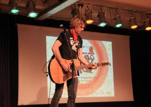 弗莱堡大学汉学系的学生Jorinde以生动活泼的语言,为我们讲述了她学汉语的轶闻趣事和心理历程。尽管求学的路途并非一帆风顺,但对中文的热爱之情早已成为她坚定不移的前进动力。演讲完毕,Jorinde还为观众们献上了一首吉他弹唱:周杰伦的《彩虹》。