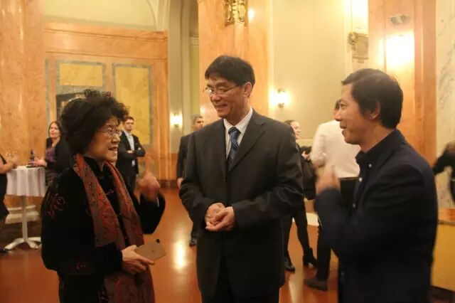 演出前,中华人民共和国驻捷克大使马克卿会见杭州爱乐乐团团长邓京山、副团长林尚专