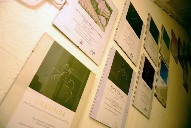 最后一站大家来到Weingut Sonneneck葡萄酒庄,酒庄装饰古朴别致,获奖证书满眼皆是。美酒漂香,把酒言欢,庄主介紹了干,半干,甜三种酒品尝,酒品后的采购,不醉不归,抱酒回,笑容伴著一天的快乐。