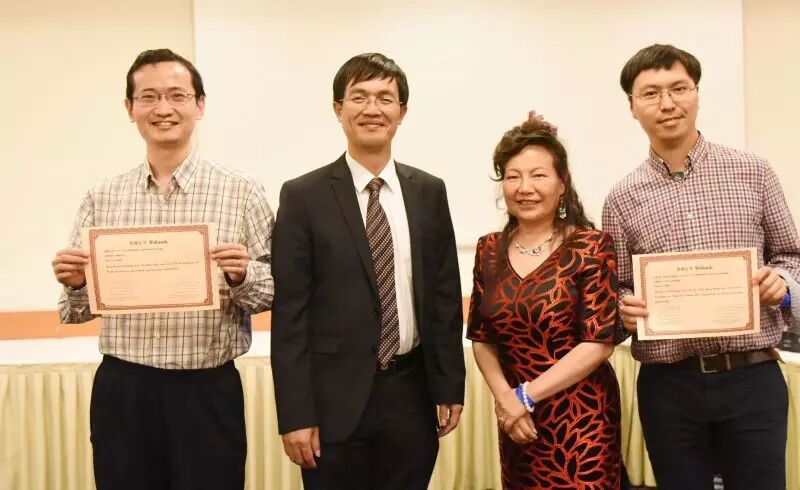<总领馆卢主任及顾裕华会长为王强、陈晨两位博士颁发证书>