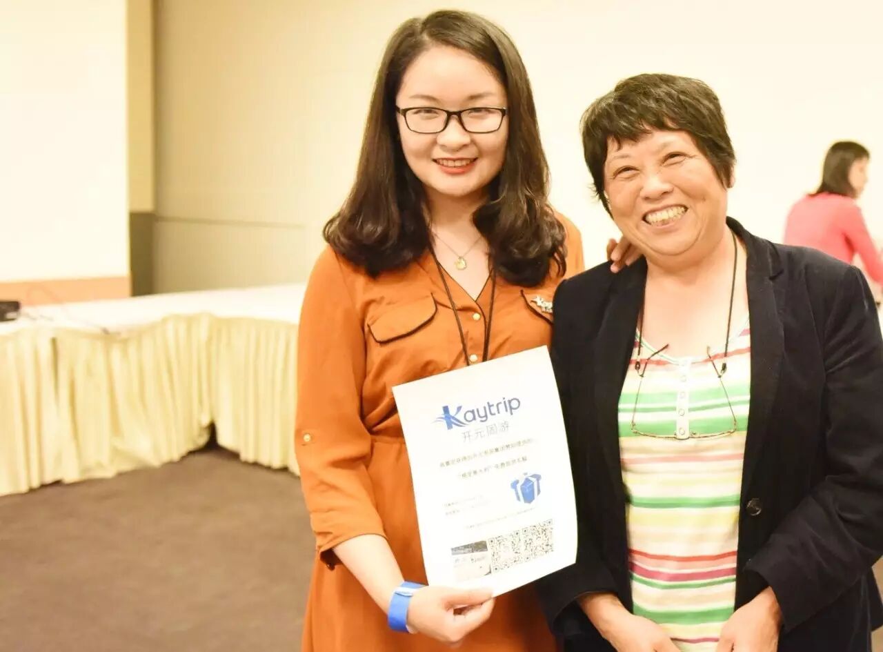 <开元周游集团代表与一等奖即开元“感受意大利”旅游名额获得者俞华女士合影>
