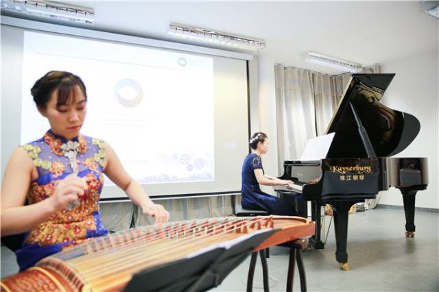 ▲伎乐天弹拨乐团甘文怡演奏古筝,云泽音乐的李云泽女士演奏钢琴
