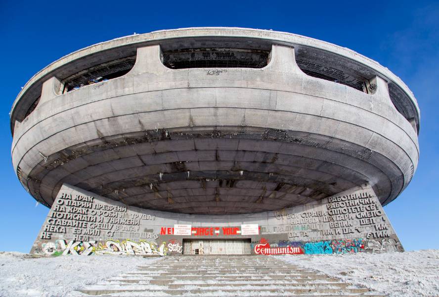 飞碟纪念碑建于上世纪80年代,为了纪念19世纪俄罗斯和保加利亚联手在这一带山头抵抗土耳其侵略,建筑初衷就是提醒人们前苏联是保加利亚的好朋友。 而随着前苏联的解体,这栋神似飞碟的建筑物也失去了它往日的光彩。