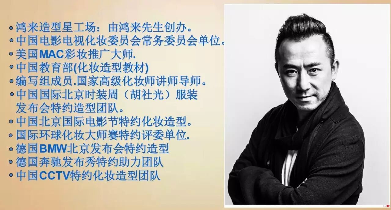 他是教育部化妆造型教材编写组成员、国家高级化妆师导师、北京多加化妆造型学校客座教授。