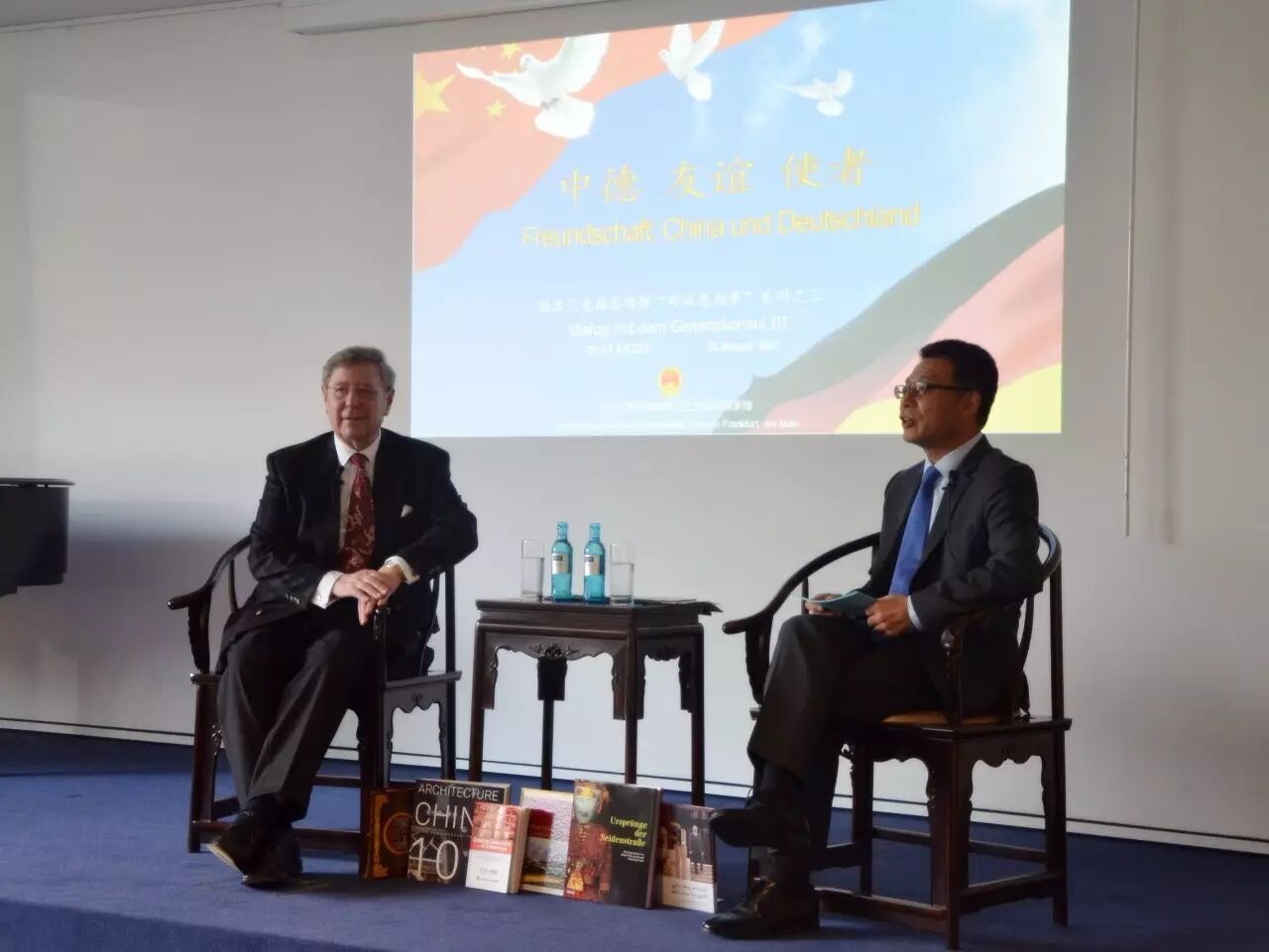 8月23日下午,中国驻法兰克福总领馆多功能厅迎来了”对话总领事”系列活动第三期。此次与中国驻法兰克福总领馆王顺卿总领事对话的嘉宾是德国巴符州曼海姆市前第一副市长艾格尔博士(Dr.Norbert Egger)。领区各地德中友好协会成员和代表也作为观众应邀出席对话活动。