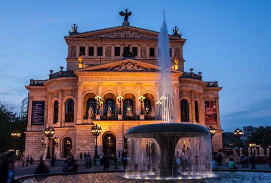 演出地点法兰克福老歌剧院(Alte Oper)1880年建成,是法兰克福最著名的历史建筑之一,法国巴黎歌剧院的复制品,当年威廉一世观看了首场演出之后,大为感动,说唯有法兰克福能继承如此金碧辉煌。
