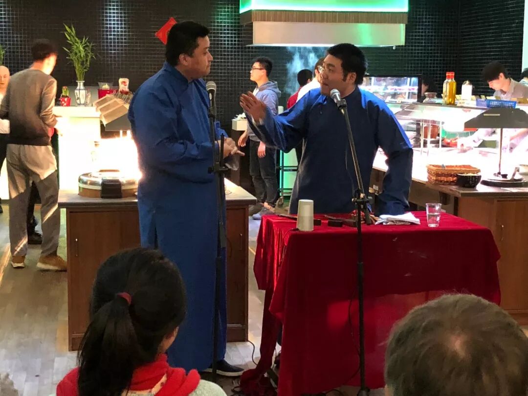 压轴的节目是由布伦二男神刘辉和李晨昊带来的相声表演。先由李晨昊带来的快板表演,让台下的国际友人连连拍手。两人联袂带来的相声表演《大家的好儿子李晨昊老师》,一个捧人一个逗人,妙语连珠,最后京剧小片段获得了台下的阵阵掌声。