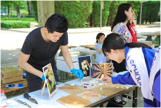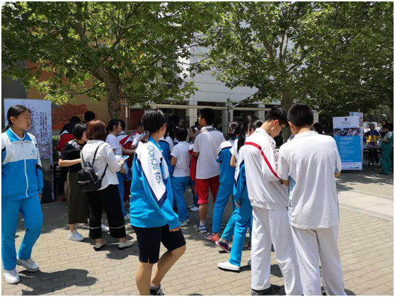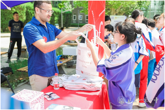 在一零一中学喷泉广场,即使在炎炎烈日之下也吸引了大量学生前来参与多种多样的活动。同学们在参与活动的同时,还了解到了大量关于法国文化的知识,并获得了各种小礼品。
