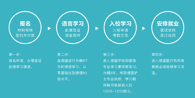 本项目为18-45周岁、高中或中专(含)以上学历人员提供赴德学习德语至B2水平、护士专业带薪留学三年、毕业后安排工作等综合性服务。让学员掌握一门语言和一项专业技能,从此改变人生。