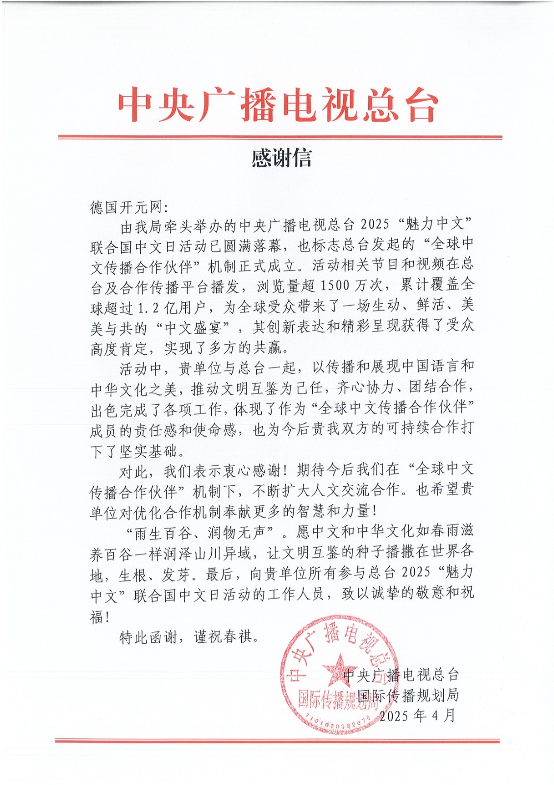 展望2026年,开元媒体将持续提升内容质量与传播创新,拓展更广泛的受众影响力,深化中德文化互动,为促进中德文化交流发挥更积极的作用。