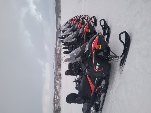 在我们参加雪地摩托项前,帮所有人检查护具,还蹲在雪地里为每位团员拍动态