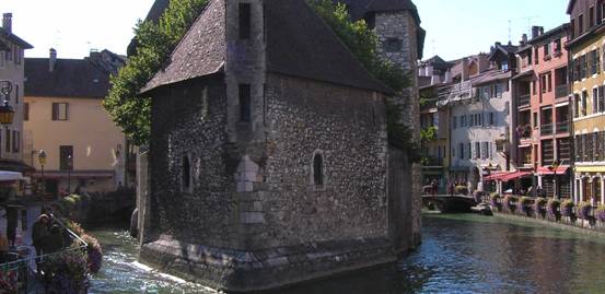 安娜西小镇的运河中有一座岛——中皇岛形状像一艘船、停在河边。这是一座石造建筑,又叫利勒宫,这是安娜西城中最具代表性的古迹。三角船形的皇宫坐落在河中小岛上,她始建于12世纪。是欧洲上镜率最高的建筑之一。历史上,这里曾充当过贵族的私宅、法庭、造币厂和监狱。今天,作为安纳西的地标性建筑,中皇岛是一座展示当地历史的博物馆。