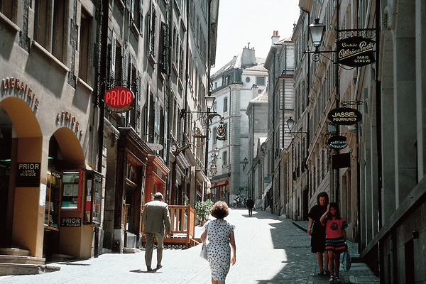 在隆河右岸山坡上的老城区,因为地势较高的缘故,当地的居民又称之为上城。这里不但是教堂、古迹的聚集地,在蜿蜒的小巷弄间还有许多小巧可爱的古董商店,欧洲启蒙时代的思想家卢梭的故居也位于旧城区内。老城区内石子铺成的街道,窄窄弯弯地向前沿伸着,仿佛是一只默默伸出的手臂,要把你带向上一个世纪的童话中。绿树掩映中,忽隐忽现的欧式建筑古朴凝重。