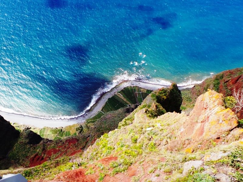 最后到达Cabo Girão。Cabo Girão位于马德拉岛南部海岸,是欧洲最高海岸悬崖之一,也是世界第二高的海边垂直悬崖。崖壁落差达589米,拥有无与伦比的观景视角,足与一向以险峻壮阔景色著名的美国科罗拉多大峡谷相媲美。Cabo Girão 被评选为全世界九大最佳观景悬崖之一。同样与科罗拉多大峡谷相似的是,悬崖最高处安建了一个玻璃观景平台skywalk。登上观景台,马德拉群岛全景及浩淼大西洋一览无遗。