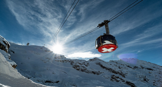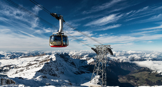 【从英格堡上铁力士山可乘坐三段缆车】