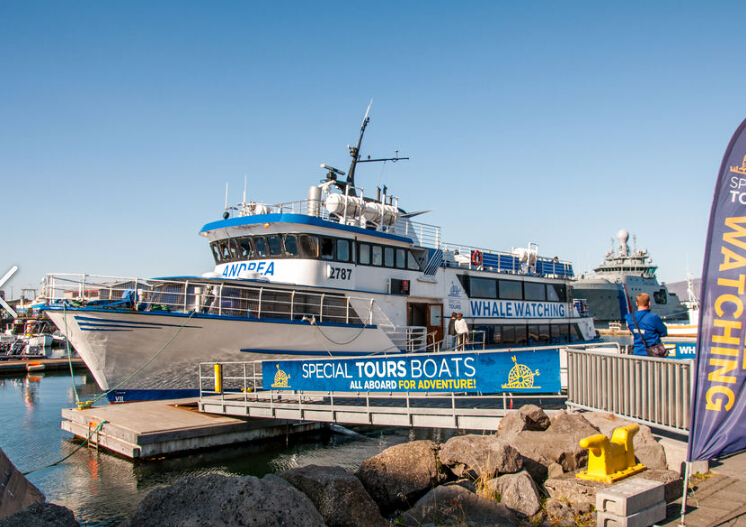 从雷克雅末克的旧港口出发后,您将有幸乘坐Andrea号—冰岛最大的赏鲸船。夏天时,您也可以在 Rosin号参加快穿体验(5月到8月)。