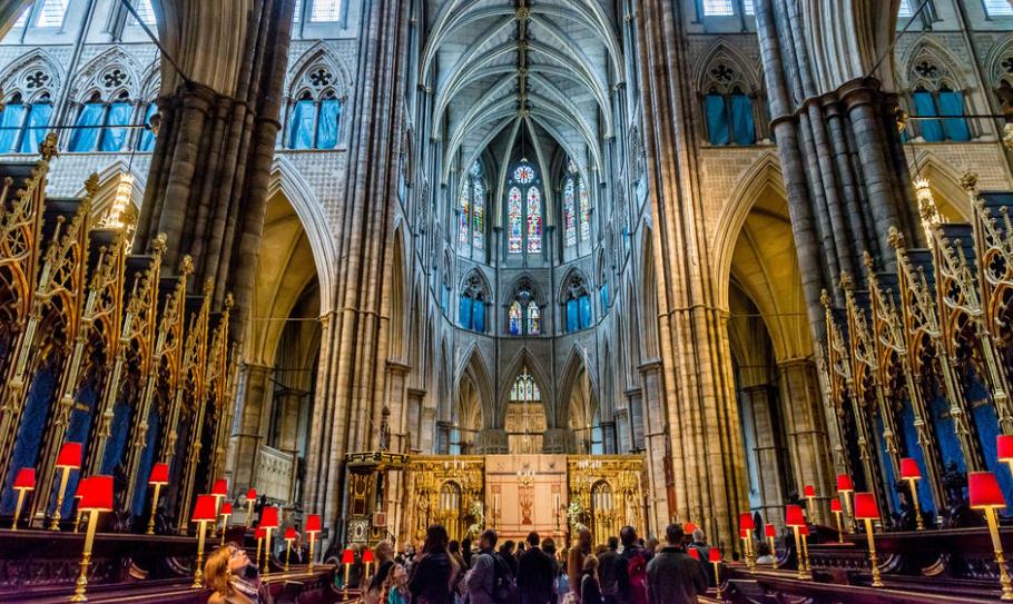 威斯敏斯特教堂自1066年以来就成为加冕教堂, 十七个君主都埋葬在那里。这个修道院也是2011年威廉和凯特结婚的地方。