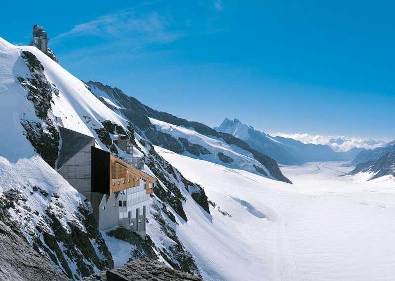 少女峰位于阿尔卑斯山的心脏位置。这个迷人多姿的地区拥有最惊人的风景:欧亚最大的冰川覆盖区域,欧洲最长的冰川,900米厚的冰层,9座海拔在4000米以上的高峰。总而言之,该地区自然美景无以伦比!