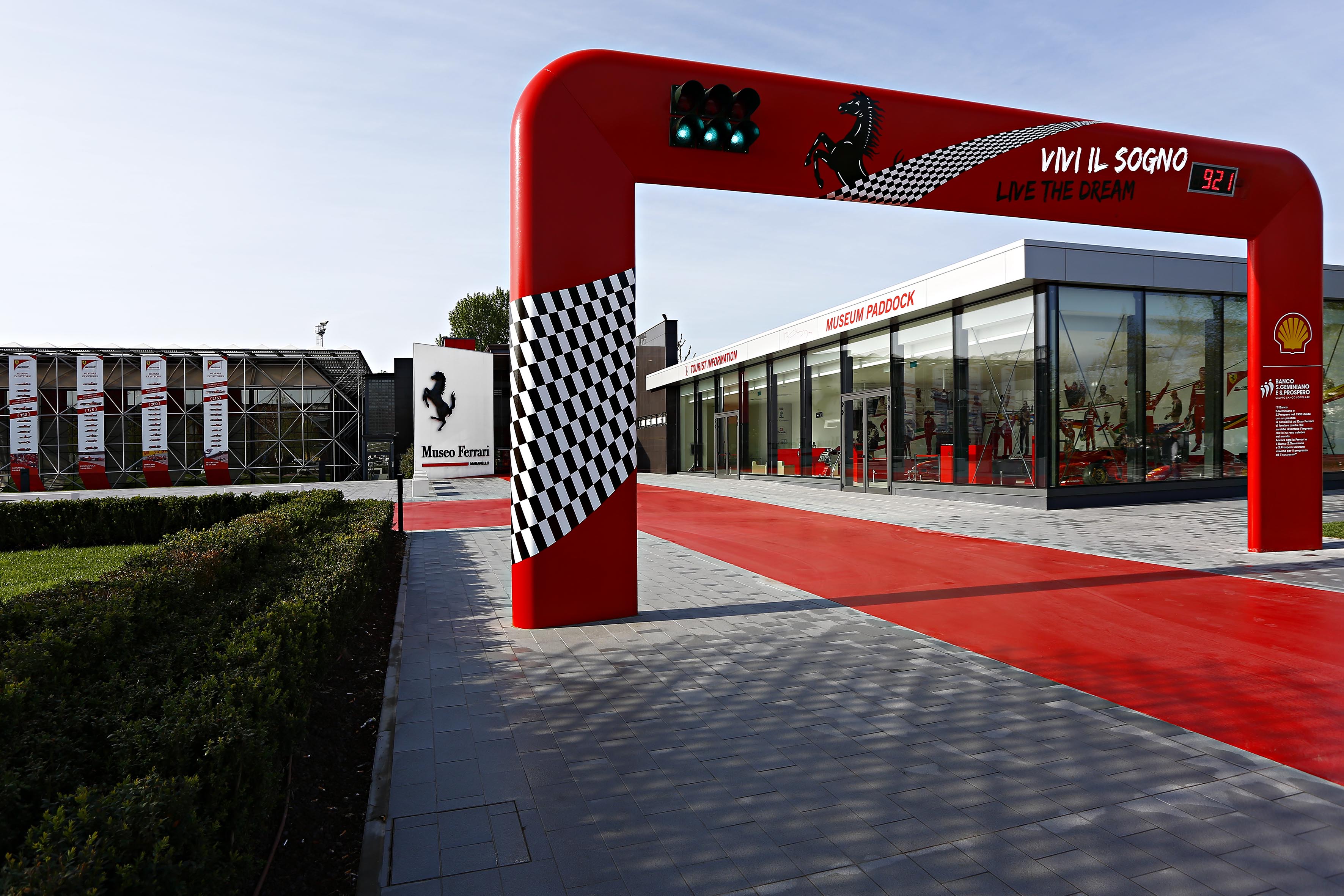 法拉利博物馆坐落于恩佐•法拉利的故乡摩德纳(Modena)市附近的马拉内洛(Maranello)小镇,这里记录了法拉利从1947年至今的60年历史,将人们带入法拉利公司历史的神奇之旅,同时也向参观者提供了欣赏那些保留至今的稀世法拉利车型的机会,是法拉利迷们的乐园。博物馆于1990年开放,博物馆的玻璃幕墙充满现代时尚感,新馆内部并无柱子支撑,展馆整体呈流线型,颇具活力。 法拉利距离法拉利总部工厂仅有几百米,与测试跑道和塞奥拉诺赛道也只有一街之隔,旁边就是著名的来此参观,耳边跑车引擎的轰鸣声此起彼伏,很有氛围。博物馆的透明建筑外用几何形的钢架笼罩,很有现代感。周遭悬挂的红色条幅上记录着法拉利F1车队216次冠军的光辉成绩。白色大门上有醒目的法拉利跃马Logo,旁边还有官方纪念品商店,可以在此挑选周边纪念品。