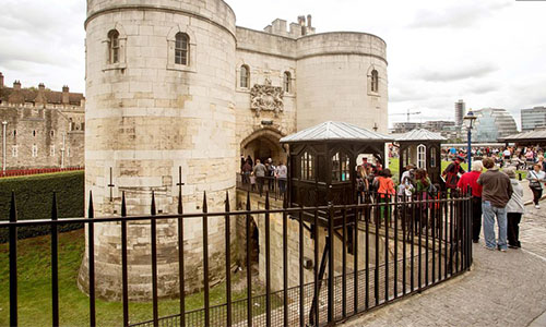 伦敦塔是不列颠群岛最受欢迎的历史景点,每年接待250万参观者。它是一组塔群,其中心是一座诺曼第式建筑的日塔,是塔内最古老的建筑,其他三个塔群都是方形。其中最有吸引力的是珍宝馆,有全套的御用珍宝在那里展出。紧邻珍宝馆的是宏伟的白塔,四角建有锥形塔楼,俯视着四周。