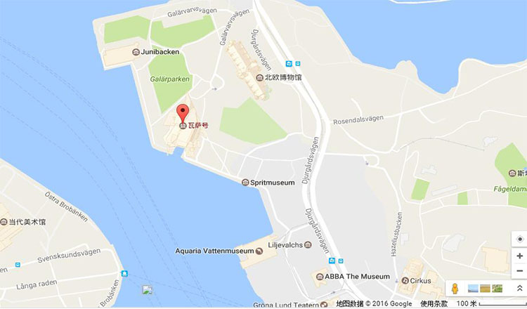 巴士:乘坐67路巴士至Nordiska museet/Vasamuseet站;或乘坐69路和76路至Djurgårdsbron站。