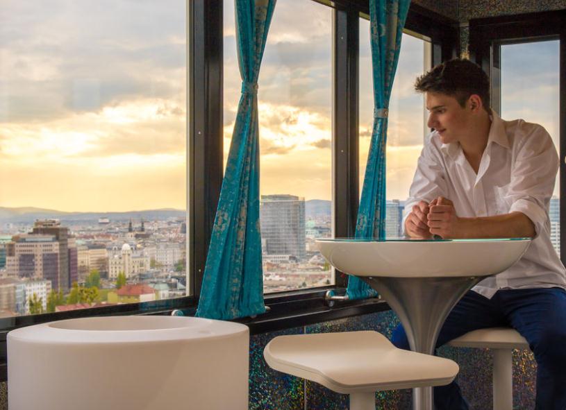 巨型摩天轮除了传统的摩天轮车箱外,更提供场地予小型派对、记者招待会,甚至是浪漫晚餐的二人厢座。现在还有新建的“历史概论”车箱,内里回顾着维也纳 2 千年以来的历史和故事。旅客们可在这个车箱内体验重构的维也纳历史事迹。