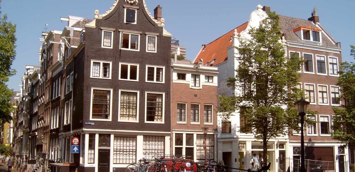 阿姆斯特丹是座水城,河网交错,河道纵横。有大小165条人工开凿或修整的运河道。河道两旁是典型的荷兰传统民居建筑。特点是房子正面和窗户都是细长的,这是因为当时征收房产税是按门面的面积征收,精明的荷兰人为了节省税都尽量减少正面的面积。由于门面狭小所以装饰的心思都放在了屋顶的山墙上。仔细观察会发现各家的山墙都不同。由于门窄,大型家具物品需从窗户进去,为此房上设有突出的吊钩。