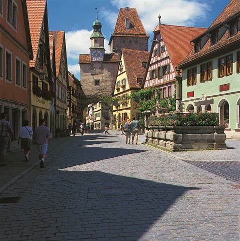 陶伯河上的罗腾堡犹如来自于中世纪美丽的珍宝,它是浪漫之路沿线主要的观光站点。小镇上纵横交错的鹅卵石小径,排列杂乱的房屋和高耸的城墙, 透露出一种不可思议的魅力。这里是德国对文物古迹保护得最严格的地方,所以,有时候就会感觉像是一座中世纪的主题公园,尽管如此,等到晚上最后一趟旅游巴 士离开之后,黄色的街灯会让小城散发出一种魔幻色彩,久久不去。