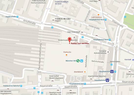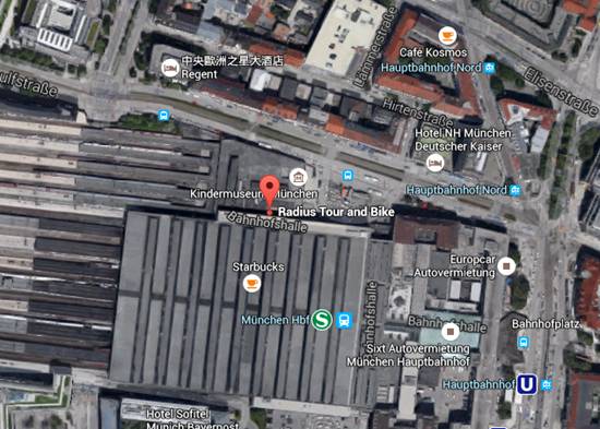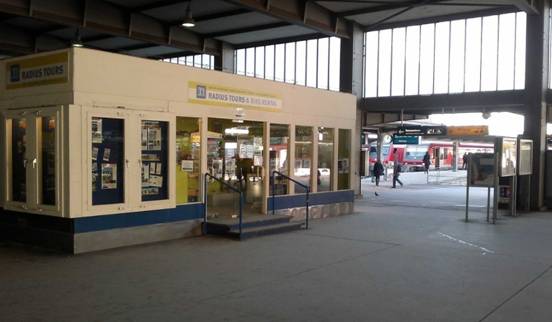 Radius Tours Office,Munich Central Train Station (Hauptbahnhof), 慕尼黑中央火车站32-34站台对面。
