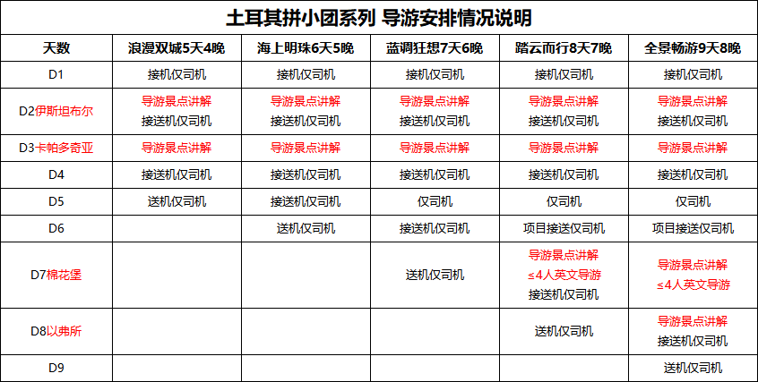 2、9 人散拼小团预定行程,所列参考或者同级酒店,不单独指定,旅行社可根据实际情况调配或安排参考酒店以外的同级别酒店;旅游价格为大床房、双床房或三人房的每人价格;如需双床房请务必在预定后提前告知,我司会在伊斯坦布尔和安塔利亚尽量安排,卡帕多奇亚和费特希耶为特色旅游城市,无法确保一定有双床房。