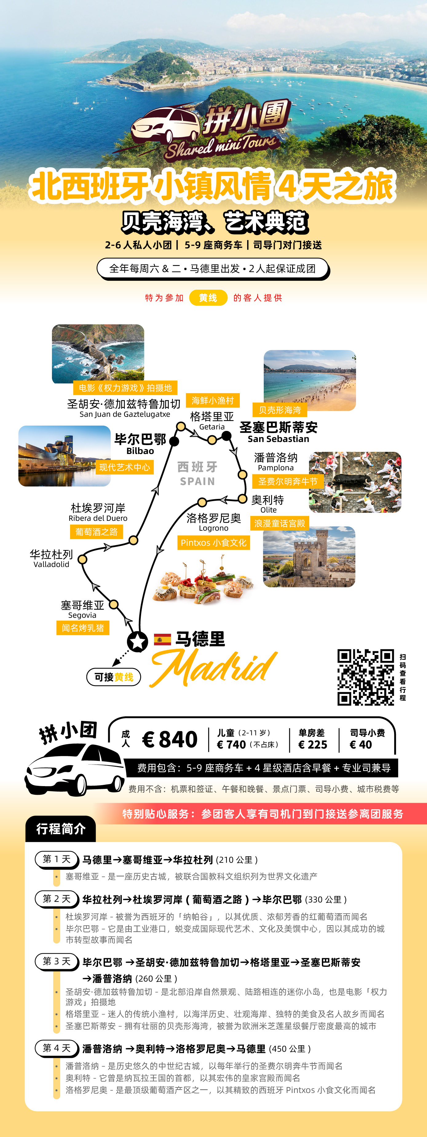 路线名称:【拼小团】北西班牙小镇风情4天之旅(马德里往返) ; [ 欧洲旅游, 拼小团 ]