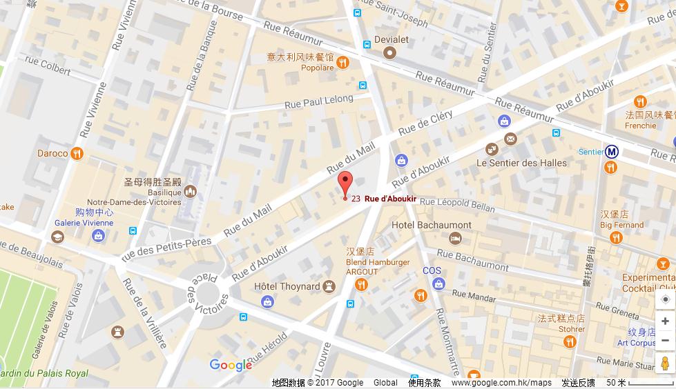旅游办公室,23 Rue d'Aboukir, 75002 Paris, 距离卢浮宫只需要步行10分钟左右的路程。